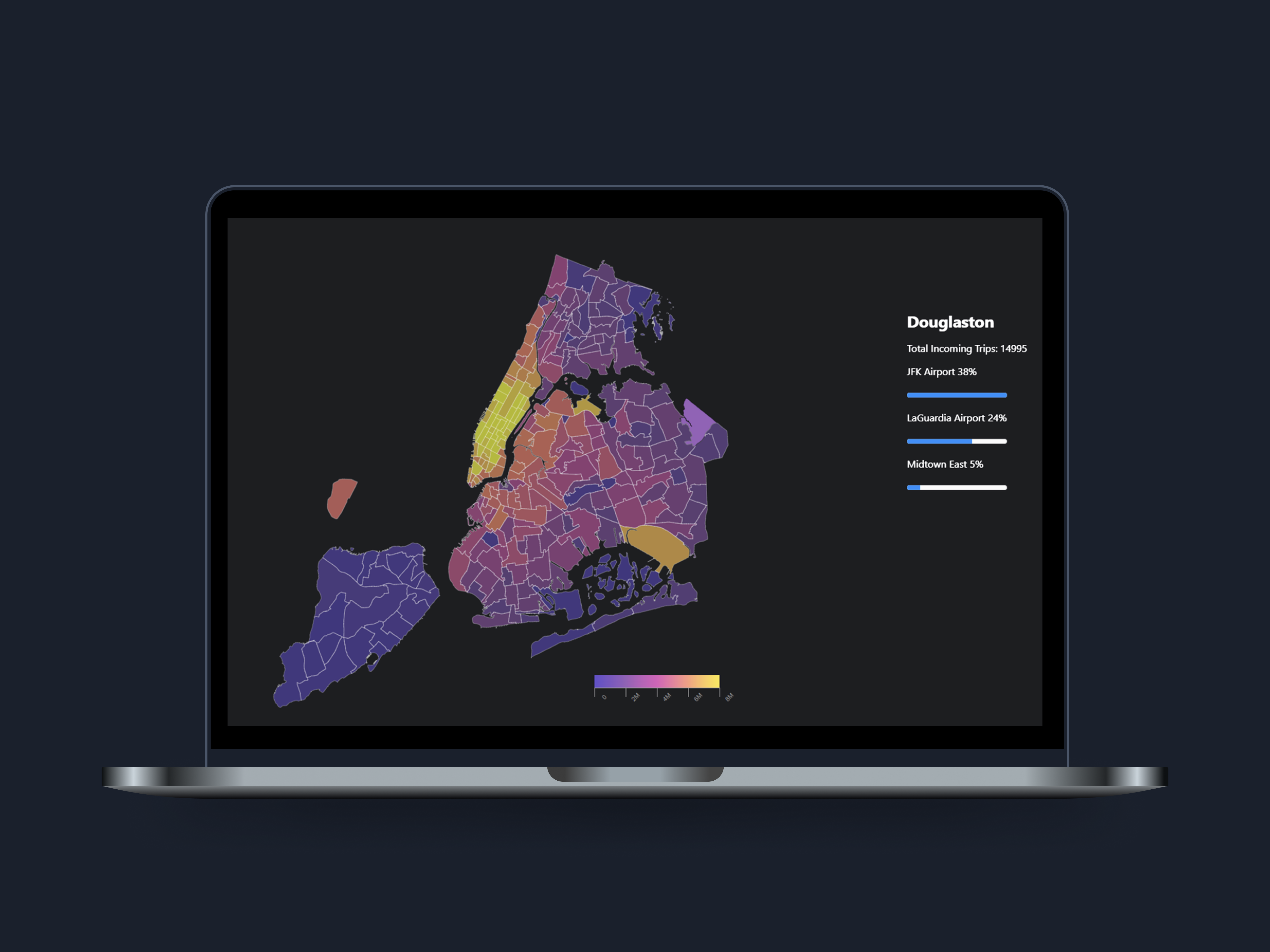 A NYC Taxi Trip Visualization that creates a story of trips, public transportation, and people in an urban environment