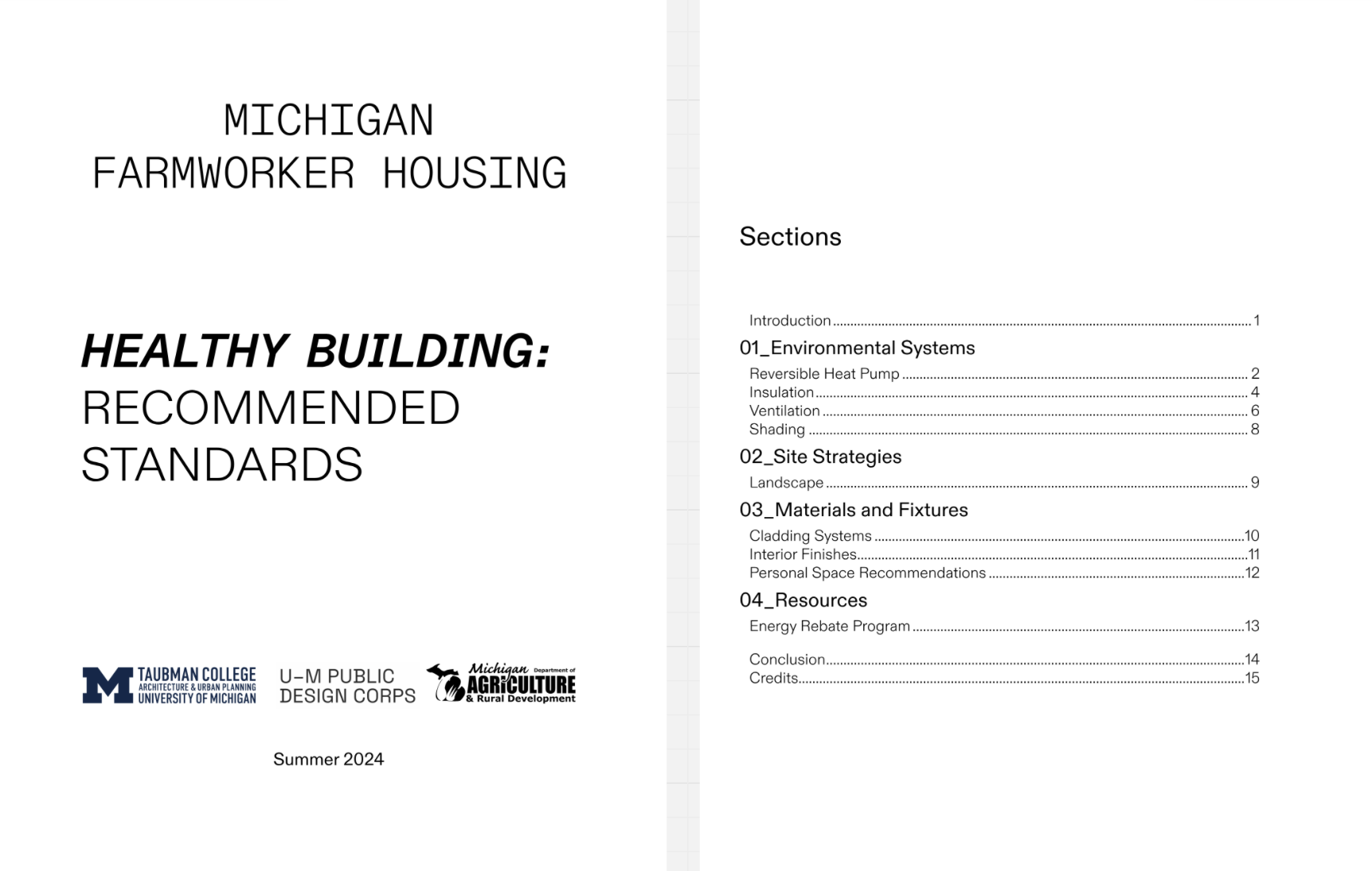 A recommendation brochure for MDARD to improve the housing conditions for H2A and Seasonal agricultural workers in Michigan