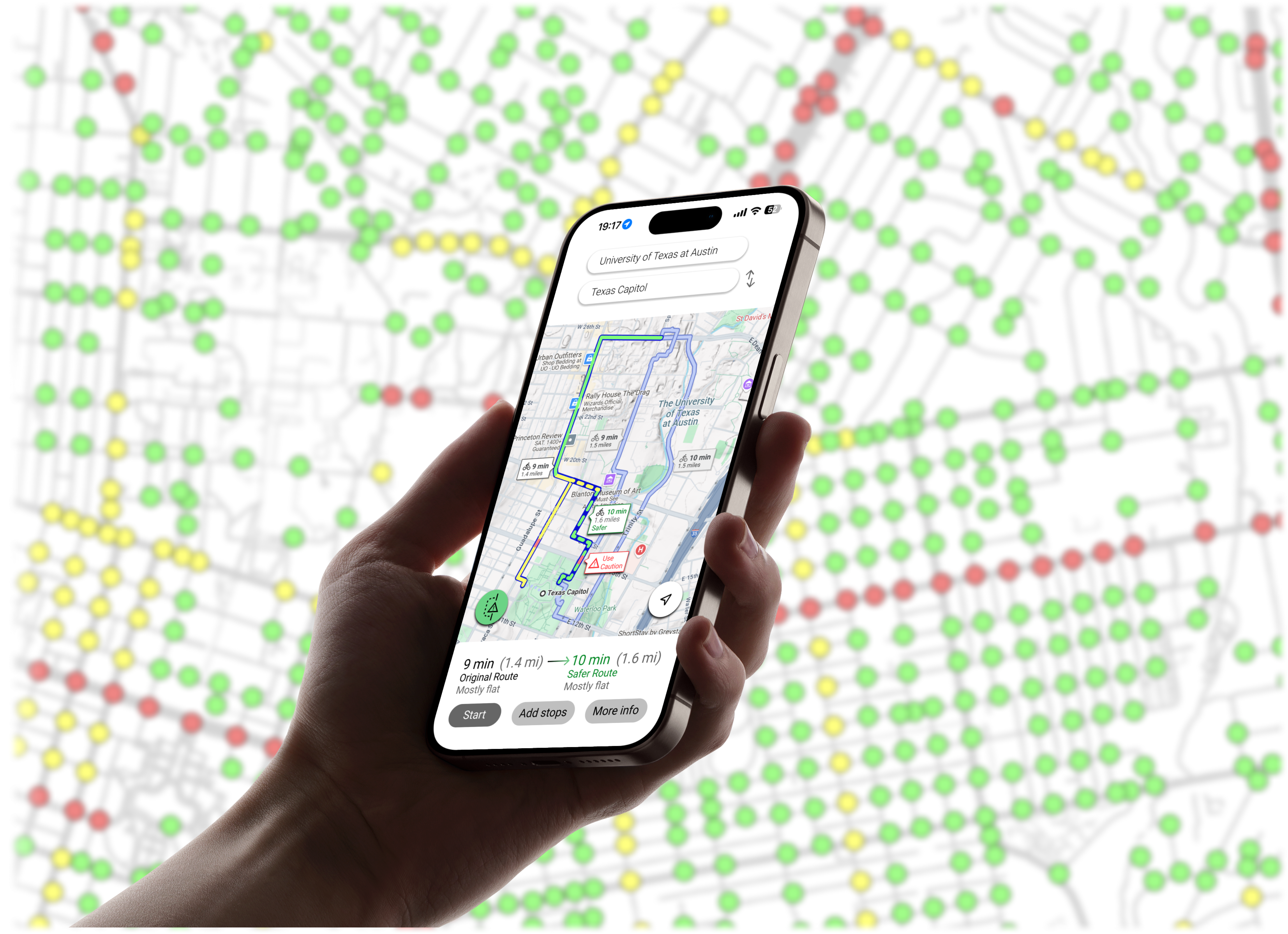 This project leverages machine learning techniques to predict perceived cycling safety in Austin, Texas with visual and ethnographical data. The data inform a mobile application that assists cyclists to identify potential accident risks on their routes and suggests safer detours.