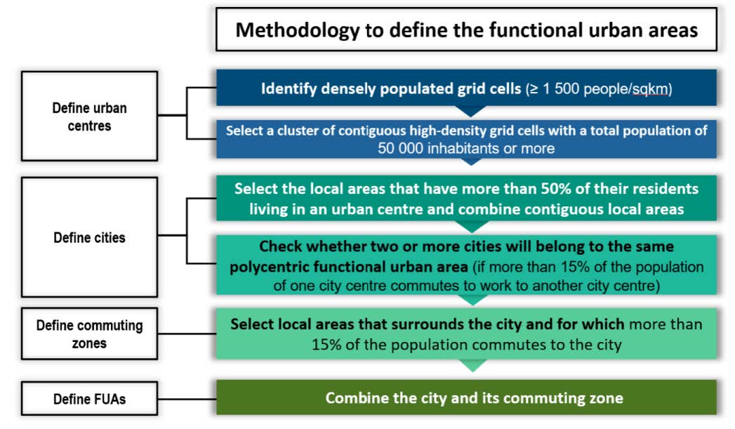 To explore these effects, we focused on Functional Urban Areas (FUA) classification, which defines geospatial boundaries encompassing urban cores and their economically connected commuting zones.