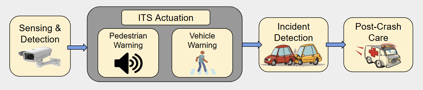 Other than leveraging advanced technology in a system, the end goal of our project is to improve the travel experience for pedestrians, cyclists, and other vulnerable road users and eventually improve the willingness to "cross the road" and reconnect once-split neighborhoods and build stronger community connections.